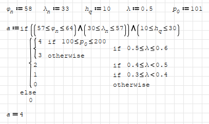 Столкнулся со следующей проблемой: есть несколько условий, необходимо, чтобы при заданных значениях правильно бралось значение "а".