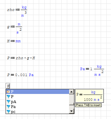 P gets unit m3/m3*Pa if I try to change the default unit to Pa. It is in fact Pa because the volumes cancel out each others but my document becomes very uncomprehensive to read as this happens with other multiplications too. How to get the m3/m3 dropped out, I couldn't find a working solution?