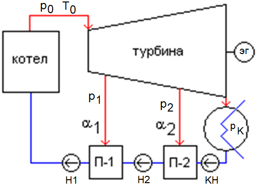 But I dare to note that a real steam turbine unit has up to eight steam extractions from the turbine to regenerative heaters. And not only mixing, but also surface type.