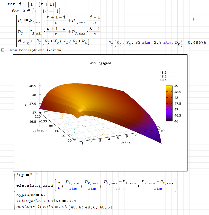 I have f(x, y) - thermal efficiency of a steam turbine with two steam extractions for heating feed water depending on the extraction pressures.
