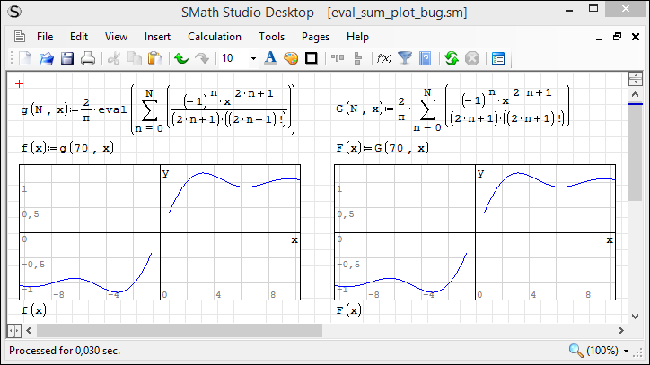 SMath Forum SMath Studio Bugs & Problems Parsing Problem 1 Pages (2 items) Parsing Problem - Messages Go to last post #1 Posted: 6/10/2016 12:02:11 PM Jean Giraud 983 likes in 6,866 posts. Group: User That one is for Designers wrt the latest Nightly build.Done in Smath 5346 OFFicial release.jeanMaths Integration Parsing Procedure.sm (23.92 KiB) downloaded 722 time(s). 2 users liked this postDavide Carpi 6/11/2016 7:51:00 AM, Andrey Ivashov 6/11/2016 9:26:00 AM #2 Posted: 6/11/2016 9:33:19 AM Andrey Ivashov 2,317 likes in 3,963 posts. Group: Super Administrator Jean,Thank you! Fixed. And... if previous versions of SMath Studio required eval() function to be used, now it doesn't matter anymore.eval_sum_plot_bug.sm (7.14 KiB) downloaded 748 time(s).Best regards. 1 users liked this postDavide Carpi 6/11/2016 11:34:00 AM 1 Pages (2 items) New Posts No New Posts