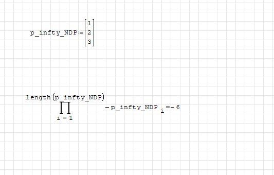 SMath Forum SMath Studio Samples prod in matlab 1 Pages (2 items) prod in matlab - I need function prod for SMath studio - Messages Go to last post #1 Posted: 4/10/2017 2:44:22 PM josef 0 likes in 8 posts. Group: User In Matlab: prod(-p_infty_NDP)In SMath? Function prod?Thank you. #2 Posted: 4/10/2017 3:29:08 PM Arie 94 likes in 285 posts. Group: User product(el(-p_infty_NDP,i),i,1,length(p_infty_NDP))Will look like this Feel free to join the SMath Studio Users Discord Channel: https://discord.gg/PayZpJW 1 Pages (2 items) New Posts No New Posts