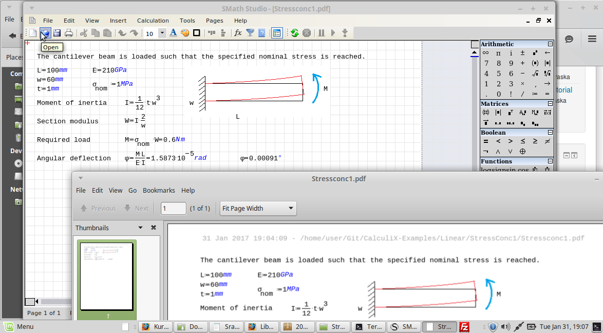 Actually, the VM runs ubuntu and SMath is executed with mono in the screenshot. The displayed pdf is generated by save as under linux. As I said, you need to install the pdffiles plugin by Andrey Ivashov.