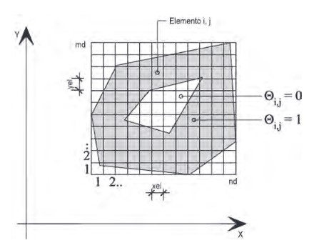 On a textbook I found some applications with a fictitious rettangular domain and a function (theta in the picture) defined from vertices coords, that accounts for the effective boundary.