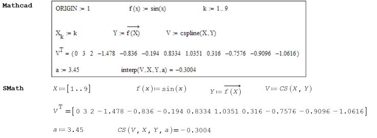 2. From what I tested before Smath cinterp is universal [Matlab, Mathematica, Mathcad ...]