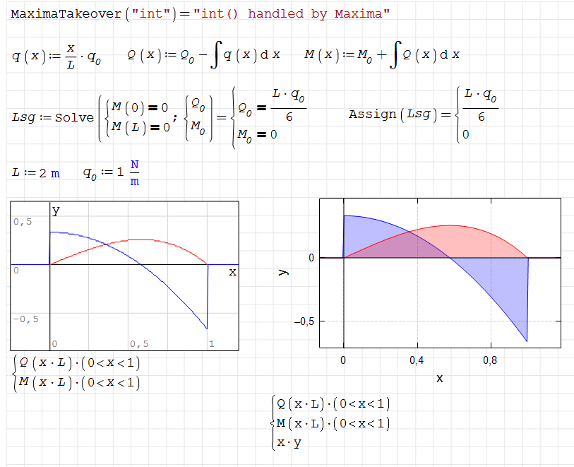 Q2) I have created a worksheet for the SFD and BMD of a simple beam, as shown in the image. I am trying to plot these diagrams using the XY Plot component.How can I restrict the x-axis range to display only the interval from 0 to 1?How can I mark the specific point of M_max on the graph?