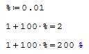 If I add, for example, 1+100%=..., it gives the warning "units don't match".