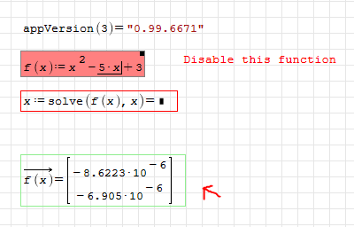 WroteFunction f(x) was not defined. What is going on then? Why the calculation did not stop with an error issued? If you wait enough it can crash SMath. I reproduced that on few computers and suspect this might be a bug or a problem. That was my question.