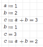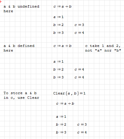 In the image below, I redefine b after using it in the calculation for c on the third line, but when I try to recalculate c on the 5th line, it doesn't use the updated value for b. I have to redefine c for the variable b to use the new value for b.