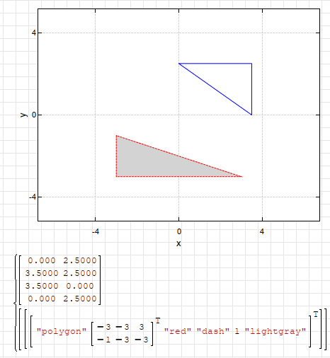 SMath Forum SMath Studio Questions Create a graph with x y plot 1 Pages (3 items) Create a graph with x y plot - Create a graph with x y plot - Messages Go to last post #1 Posted: 2/13/2023 1:37:51 PM Israel Pelaez 0 likes in 2 posts. Group: User I need to create a graph of a rectangled triangle in x-y plot. I will be happy if can someone can help me. #2 Posted: 2/13/2023 2:07:46 PM Jean Giraud 983 likes in 6,866 posts. Group: User WroteI need to create a graph of a rectangled triangle in x-y plot. I will be happy if can someone can help me.Inscribed scalene triangle offered.You can adapt rectangular in X_Y plot.Cheers ... Jean.Israel.sm (20.43 KiB) downloaded 791 time(s). #3 Posted: 2/13/2023 3:01:19 PM overlord 582 likes in 1,349 posts. Group: Moderator You can either enter triangle coordinates.Or geometric shape function of XYPlot.Regardsrect_tri.sm (5.22 KiB) downloaded 796 time(s). 1 Pages (3 items) New Posts No New Posts