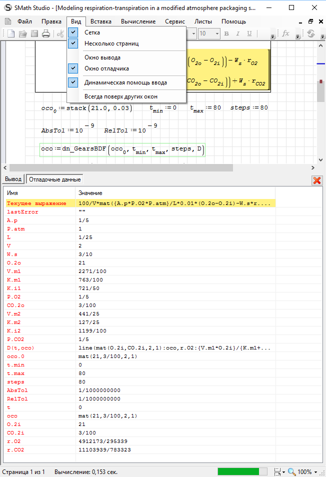 Basically, this set of equations should describe the evolution of the atmosphere inside a packaging.