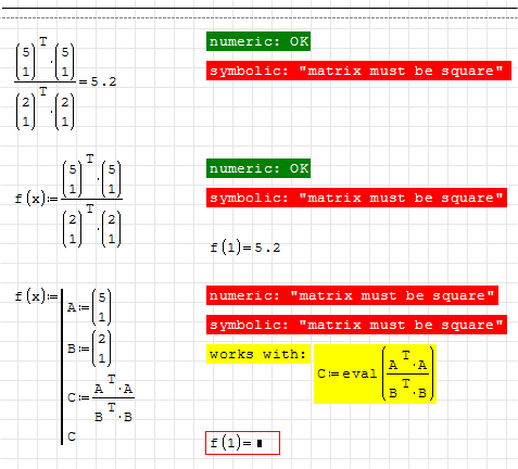 SMath Forum SMath Studio Bugs & Problems "Matrix Must be square" error with division and transposed vectors 1 Pages (1 items) "Matrix Must be square" error with division and transposed vectors - Messages Go to last post #1 Posted: 9/24/2012 7:20:36 PM Davide Carpi 1,435 likes in 2,913 posts. Group: Moderator Hi,another little issue.regards,w3b5urf3r If you like my plugins please consider to support the program buying a license; for personal contributions to me: paypal.me/dcprojects 1 Pages (1 items) New Posts No New Posts