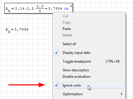 Otherwise you have to assign the units in the LHS, and eventually adjust the result (results are given in base units)
