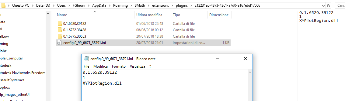 3) Deleted that .dll in the wrong folder, installed Smath back again, and I assume that while installing smath loaded back all the plugins as per D:\Users\FGhioni\AppData\Roaming\SMath\extensions\plugins dataset, including the beloved old version of XYPlot