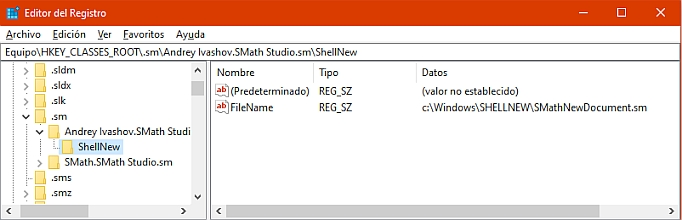 Maybe you must to restart, or not, but what you get now is a working ShellNew for .sm files in the contextual menu for the windows explorer: