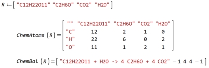 Hi Jean. The purpose of this post is to show the power of use the null space of the matrix of coefficients of a chemical reaction for get information about it, not just only balancing. For do that, because it is tedious to introduce by hand this matrix, I write a simple code for do that, with some limitations but it can handle one level of parenthesis and ions. Also isn't easy to transform a vector for the nulls space with norm one into an equivalent basis vector with integers, and there are not much literature about that, or I can't found it. I also present a robust way to get a valid answer in a lot of cases.