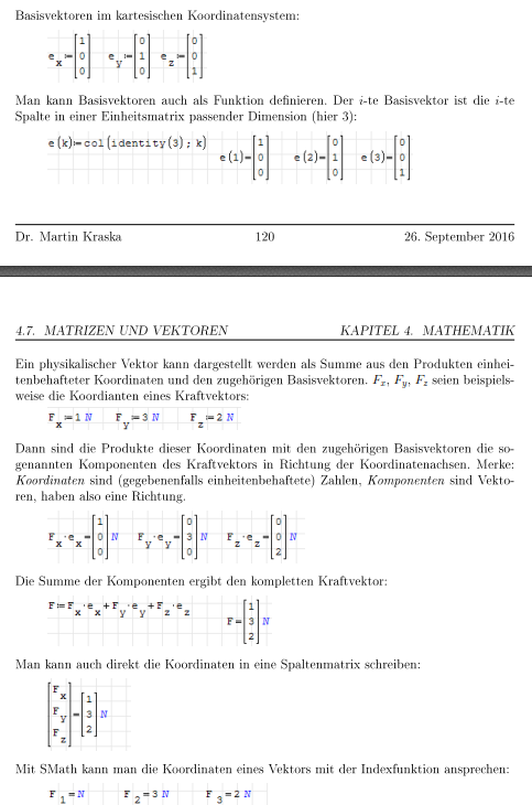 You can use SMath to demonstrate the relation between vectors, vector components and vector co-ordinates in SMath by defining base vectors and using exactly the notation given above.