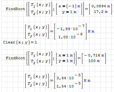 Hi. T.1(x,y) and T.2(x,y) represent surfaces. So T = [T.1,T.2] is the intersection of two surfaces. If the intersection is only a point, that's good look. But get a numerical procedure that catch it, that's square good look. Fortunately, SMath have an amazing numerical solver into a plugin. Please try this: