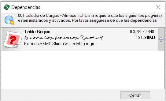 Форум SMath SMath Studio Bugs & Problems Problem with Region Table Plugging 1 страниц (3 вхождений) Problem with Region Table Plugging - Problem with Region Table Plugging - Сообщения К последнему сообщению #1 Опубликовано: 22.06.2022 11:06:09 Miguel Sambrano 0 сообщений из 3 понравились пользователям. Группа: User I have a problem when I try installed "Region Table Plugging", the message shown "Failed plugin installations". The next imagines show the problem. My Smath Studio version that is in my PC is 1.0.8151.26392. #2 Опубликовано: 23.06.2022 05:24:29 Davide Carpi 1 435 сообщений из 2 913 понравились пользователям. Группа: Moderator Hello, I've recompiled for latest stable build of SMath Studio, please try and let me know if it works for you. If you like my plugins please consider to support the program buying a license; for personal contributions to me: paypal.me/dcprojects #3 Опубликовано: 23.06.2022 10:26:39 Miguel Sambrano 0 сообщений из 3 понравились пользователям. Группа: User Thank you Mr. Davide. The Plugging has sucefully. WroteHello, I've recompiled for latest stable build of SMath Studio, please try and let me know if it works for you. 1 страниц (3 вхождений) Новые сообщения Нет новых сообщений