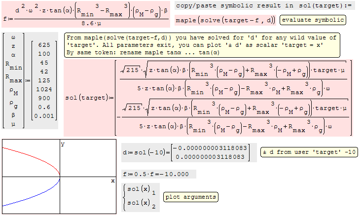 Форум SMath SMath Studio Questions Formula transformation 2 страниц (22 вхождений) Предыдущая 1 2 Formula transformation - Сообщения К последнему сообщению #21 Опубликовано: 22.11.2019 23:28:20 Jean Giraud 983 сообщений из 6 866 понравились пользователям. Группа: User 3 more examples to illustrate other use of maple/solve.Please, report working or not for Collabs to doctor.Cheers ... JeanContour SOLVE AstroidHyperbola.sm (22,54 КиБ) скачан 623 раз(а).Contour SOLVE [Folium].sm (23,83 КиБ) скачан 490 раз(а).Contour X_Y plot [More Parametric].sm (102,06 КиБ) скачан 503 раз(а). #22 Опубликовано: 23.11.2019 10:50:38 Jean Giraud 983 сообщений из 6 866 понравились пользователям. Группа: User WroteHere is doctored in pink [2 regions].Besides other coefficients, calculated separately,your project is all contained/compacted in there [SS 6179].003 [Solved Simple].sm (13,87 КиБ) скачан 479 раз(а). 2 страниц (22 вхождений) Предыдущая 1 2 Новые сообщения Нет новых сообщений
