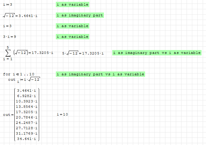 In simple examples the use of i as control variable (vs imaginary numbers) it works surprisingly fine, but in more complex tasks, should be investigated.