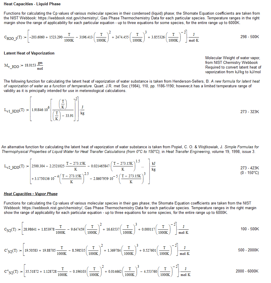 The definitions of the functions for calculating the heat capacities and latent heat are mostly omitted, but I include a few at the bottom - they read correctly into SMath and work correctly. Here is a sample: