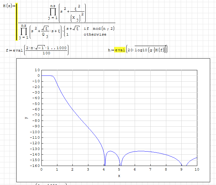 Attached, is a worksheet to design a special case of elliptic low pass filter.
