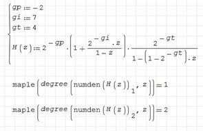 Hi. Notice that the degree of the numerator polynomial is not always equal to the degree of the denominator polynomial. Also the number of rows in rows(tt) for tt=numden(H(z)) is always going to equal two, and is not related to the degree of none of the previous polynomials.