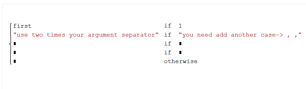 For add a new case use two times your argument separator (comma or semicolon):
