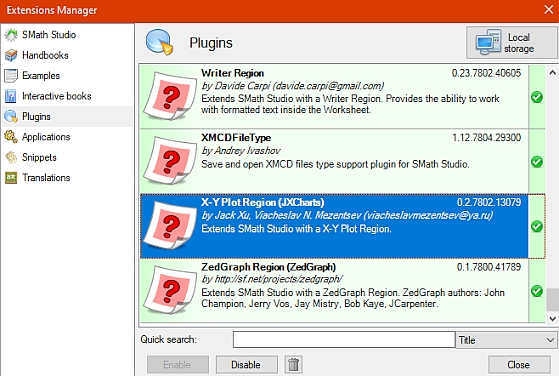 WroteHi. Yes, he does it again. One question: assuming that the version for SMath is the same, does both computers have the same plugin versions? Here is where you can check that: