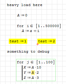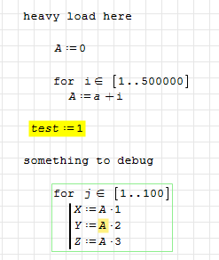 WroteAs for now I think the only way it's to insert a dummy operation in the point you want the debug starts (f.e. you can define test:1 and everything will be recalculated from that point onwards)
