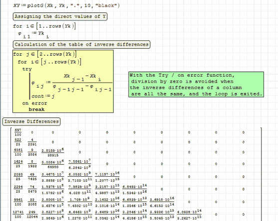 It includes the calculation of the inverse differences φ [x0, ..., xi], obtained from the values in the known points