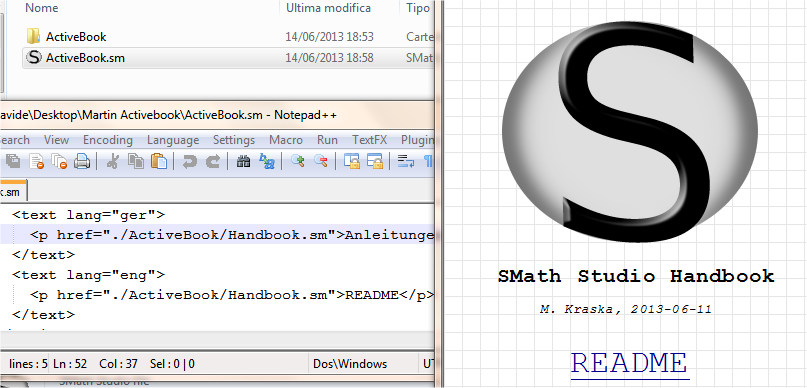 3rd (@Martin) IMHO, as for now, a tree-based structure for the files is needed (at least a simple double level structure) to make the Handbook file easier to find (I've attached a couple of screenshots); in the other hand if Andrey found a better way to handle SMath's handbooks, an additional attribute "Handbook root" applied to the main file would be enough