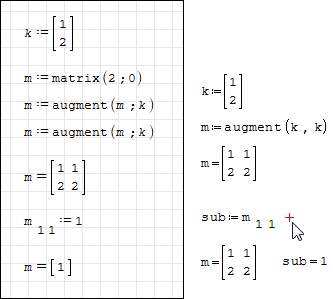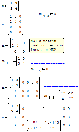 WroteI'm wondering, are you looking for an array to display differently than a matrix?I had an issue reviewing a sheet where this would have helped.In Mathcad, an array looks like an spreadsheet while a matrix looks just like it does now