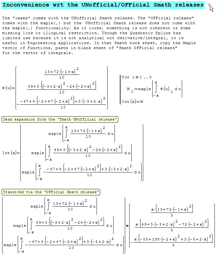 I am working an a german university of applied sciences and I am obligued to obey the law. The maxima plugin was created to provide CAS functionality to SMath in a legally clean way. I have not the slightest interest in semi-commercial solutions. I want to be free to provide the tool without any restrictions to students and customers. I make heavy use of SMath in classroom and in performing and documenting technical calculations.