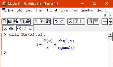 This is what a slightly newer version of maple thinks about the derivative of the real part of a complex