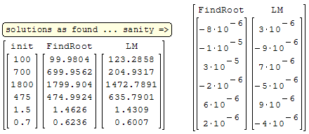 FindRoot epsilon 0.00001. The LM 10^-15 has no meaning at all