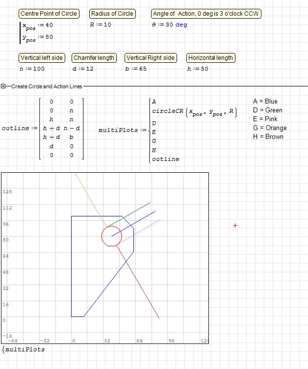 The image below shows a lifting lug, the angle of action can be 0 deg to 150 deg for example. I need to know the length of the lines from the red circle to the outline, individually, then I can see the shortest length, this must be for all angles, effectively tracing the intersection point through the angles. I know I can use Pythagoras, but was hoping to use something like GPC, but this works only for polygons?
