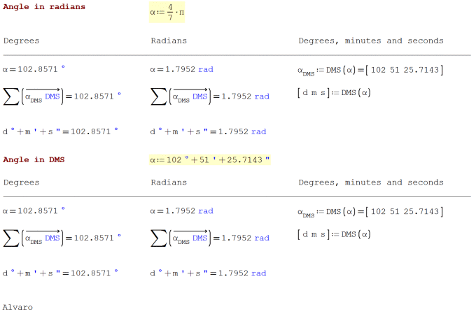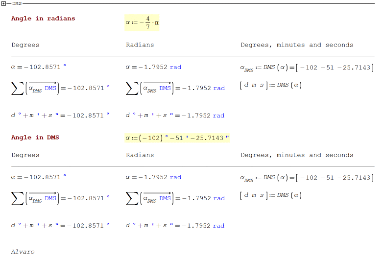 WroteIs there a way to use SMath so that, at face value, the document has angular values expressed in degrees, minutes and seconds?