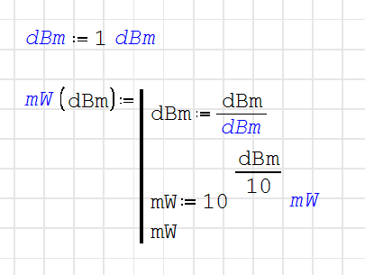Given functions are defined as 'dBm(.. and 'mW(... in order to see them as units (in blue color).