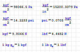 Форум SMath SMath Studio Questions kg/m2 to psi? 1 страниц (3 вхождений) kg/m2 to psi? - Сообщения К последнему сообщению #1 Опубликовано: 26.05.2023 17:01:50 JP 0 сообщений из 6 понравились пользователям. Группа: User How do we convert kg/m2 to psi? I can use lb/in2 but I prefer psi.Thanks! #2 Опубликовано: 26.05.2023 19:07:20 Alvaro 1 078 сообщений из 1 750 понравились пользователям. Группа: User Hi. kg & lb are mass units. kgf & lbf are force units. And force equals mass by acceleration, which it is in this case, g.e = 9.8 m*s^-2kgf_lbf.sm (5,56 КиБ) скачан 813 раз(а).Best regards.Alvaro. #3 Опубликовано: 28.05.2023 19:00:16 JP 0 сообщений из 6 понравились пользователям. Группа: User Perfect. I changed lb to lbf and now all is good. 1 страниц (3 вхождений) Новые сообщения Нет новых сообщений