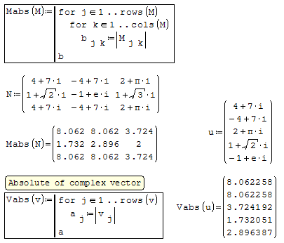 Форум SMath SMath Studio Samples Vector/Matrix Complex Utilities 1 страниц (2 вхождений) Vector/Matrix Complex Utilities - Vector/Matrix Complex Utilities - Сообщения К последнему сообщению #1 Опубликовано: 30.05.2016 14:30:44 Jean Giraud 983 сообщений из 6 866 понравились пользователям. Группа: User For your tool boxJeanUtilities Matrix Complex.sm (22,16 КиБ) скачан 933 раз(а). #2 Опубликовано: 30.05.2016 14:59:10 Jean Giraud 983 сообщений из 6 866 понравились пользователям. Группа: User ... erata in the work sheet 1 страниц (2 вхождений) Новые сообщения Нет новых сообщений