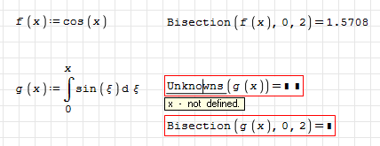 Hi Martin. The "symbolic" part in all the solvers in the NonLinearSolvers plugin is Unknowns. You can see from Bisection's syntax that it has to use it to determine which is the independent variable. In other words, if Unknowns fails, the solver fails too.