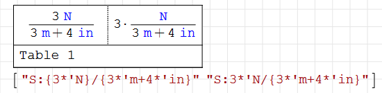 Since in a table region you can display units in blue using "S:'" before the unit text.