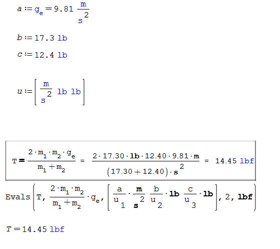 It seems like there is no way to do this without manually specifying the unit because there is no way to convert the variable exactly as defined into a string, you need to divide out the unit to keep the same numerical value. So there is no way to take the b:=17.3 lb and convert that definition into a string exactly as I show it. It would be nice if this was automatic, but I don't this is possible with how SMath is programed.
