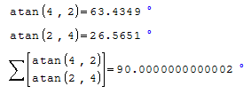 Perfect. As my last post in this topic, I can conclude that this angle is atan(4,2) = 63.4349° in your world, but it is atan(2,4) = 26.5651° in mine; that the formulas that are written in SMath are irrelevant, as are any evidence that that angle is not the one you say. Where was that "The correct value is Smath code for Smath projects."? Forget it, I really don't care. I just wanted to prevent you from being able to fool others, but I admit that you are very good at it. You win.