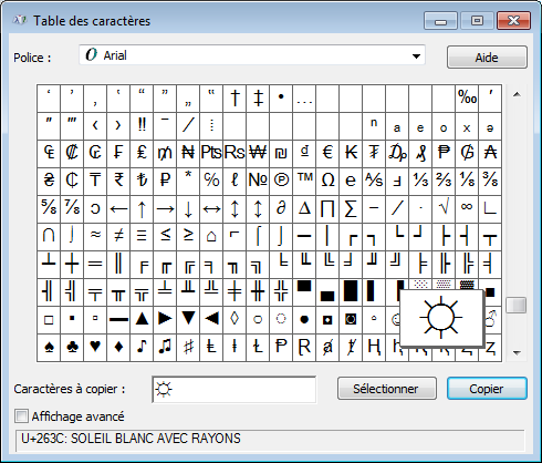 sorry for the newbie question but how did you enter the the Sun Unicode character, I am trying to follow your suggestions without suceeding.