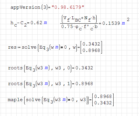 Radovan, I tried what you said and did not work, can you kindly send the file, and for your information, if you have not changed my numbers then the answer should not be what you mentioned, so the units thing must mess with the results!! Also I want to understand why the units are inconsistent? units between what exactly? Eq(w) has an area unit because (W) is squared.