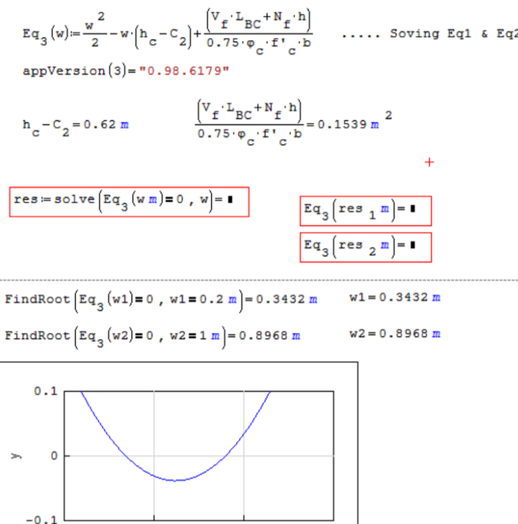 WroteRadovan, I tried what you said and did not work, can you kindly send the file, and for your information, if you have not changed my numbers then the answer should not be what you mentioned, so the units thing must mess with the results!! Also I want to understand why the units are inconsistent? units between what exactly? Eq(w) has an area unit because (W) is squared.