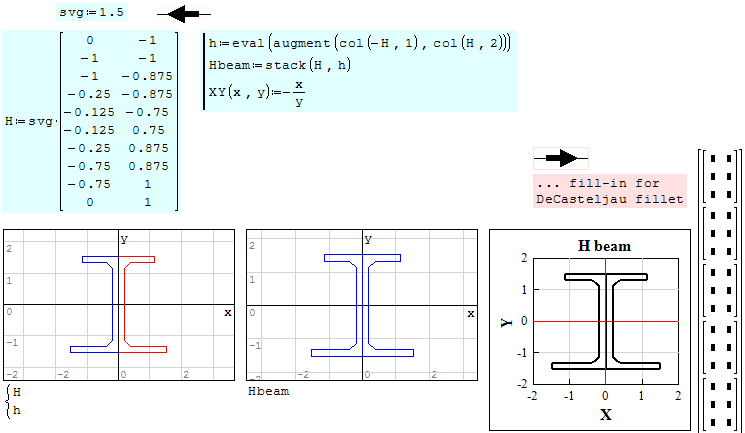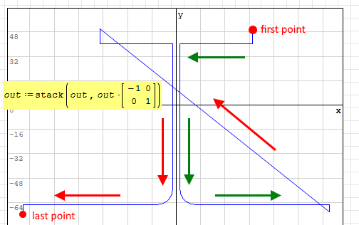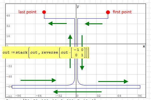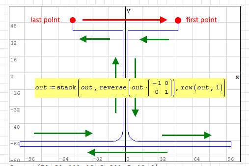- Once we have the points, the other side can be drawn by symmetry using the symmetry matrix multiplication, then stacking the points; the problem is that they aren't sorted in the correct order